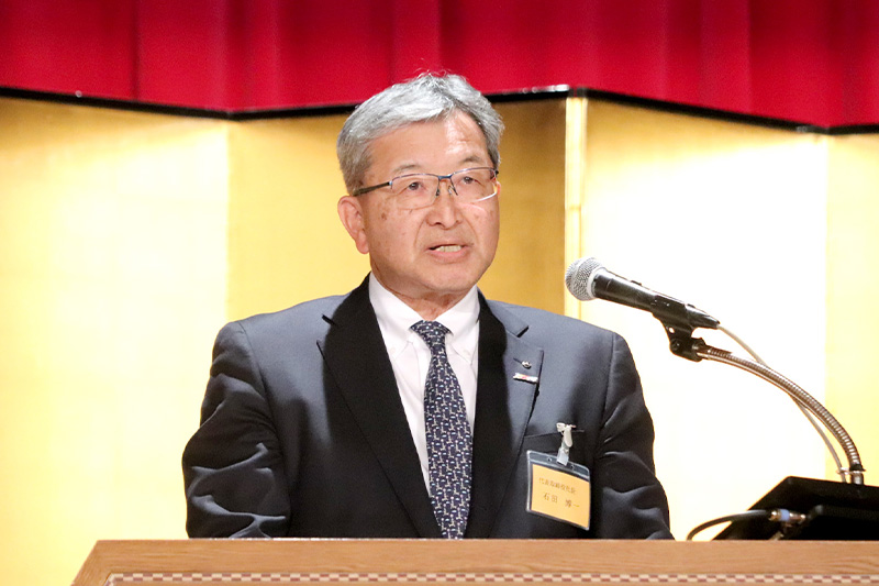 主催者を代表して挨拶した石田社長は、2025年4月22日に迎えた三機工業の創立100周年への謝辞を述べるとともに、AIや半導体を始めとする活発な投資状況や環境対応の必要性に触れ、「我々のエンジニアリングの力が発揮できる時代」と強調。今年の干支である馬に絡めて、「お客様に幸せを運び、うまくいくように、皆様と一緒に走って、走って、走って、走って、走ってまいります」と力を込めた。