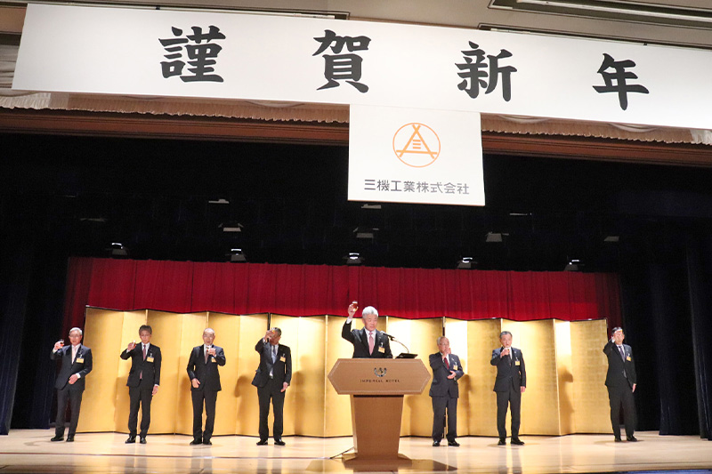三機工業(石田博一社長)は1月13日、帝国ホテル東京で、工事協力会社や取引先などの関係者とともに新年を祝う賀詞交歓会を開催した。長谷川勉会長や石田社長を始めとする三機工業の役員が出席し、約830名の参加者たちと新春の挨拶を交わした。