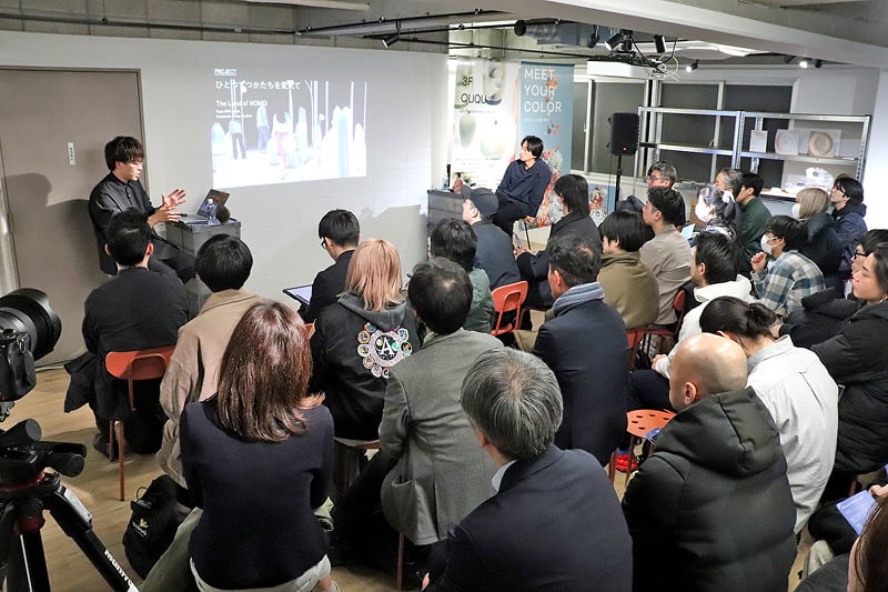 6日のトークイベントに招いたVUILDの秋吉さんは、大日方さんにとって慶應義塾大学時代の研究室の先輩にあたる。大日方さんが「無駄な装飾をしないミニマルデザインが主流である現代に対し、豊かな表現を重視するマキシマルデザインへの揺り戻しが起きていく。そのときに製造はどのように応答できるのか。その一つの解が3Dプリント」と語ると、秋吉さんは「マキシマルデザインに至る文脈はよいと思うが、時代の流れに沿った美学であるというならば、一人で行動していてもダメ。同世代のデザイナーたちと行動するなど、客観的にわかる大枠を作っていく必要があるのでは」と指摘。それを受けて大日方さんも「世界のデザイナーたちとネットワークを組んでいこうとしているところ。デザイン哲学としてどんなことを考えているか、対談していきたい」と語るなど、造形への向き合い方から事業展開方針まで多岐にわたる話題で意見を交わし合った。