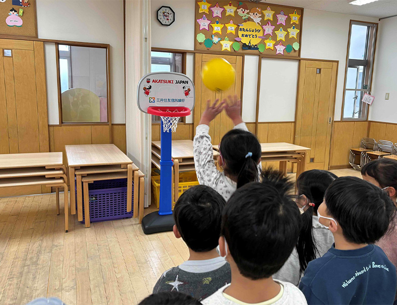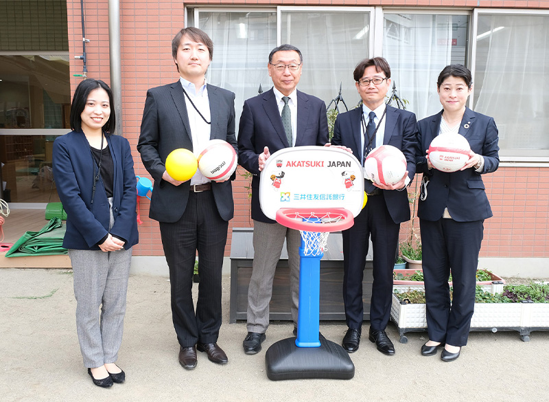 三井住友信託銀行(大山一也社長)が各支店を通じて幼稚園や保育園にミニバスケットゴールを寄贈している。日本バスケットボール協会の協賛企業を務めることからバスケ普及推進の一環として実施しているもので、2024年度は各支店から担当エリアの幼稚園・保育園など110園に贈られた。2025年度は80園を対象とし、各支店で寄贈が行われている。
