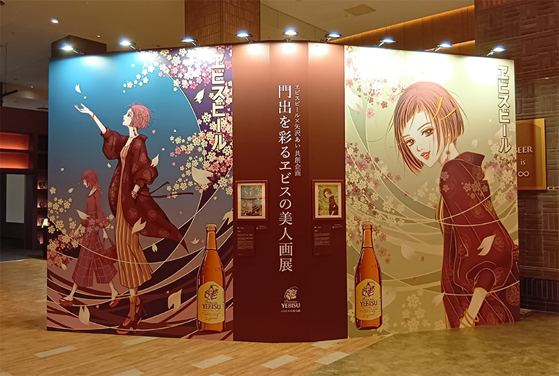 ヱビス缶の美人画2点は高さ3.5m
