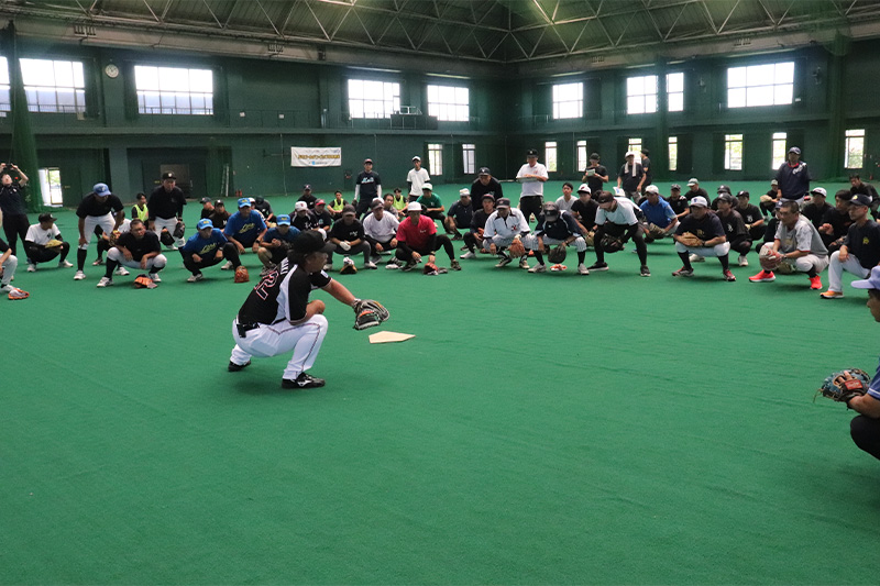 ほかに打撃・走塁についても講習を行い、参加者からは「プロの技術を学べる貴重な機会。またやってほしい」という声も聞かれた。
